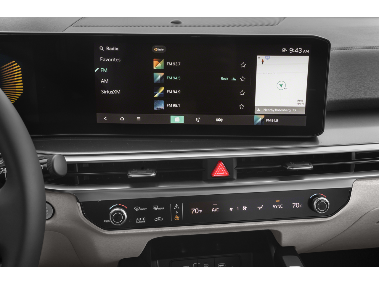 - Radio: AM/FM Standard Sound System -inc: 12.3" ccNC lite touchscreen, HD Radio, Bluetooth® w/audio remote control, wireless Android Auto and wireless Apple CarPlay, voice recognition, modem, Sirius XM, modem, Kia Connect, Over-The-Air Updates (OTA), 6 speakers and USB